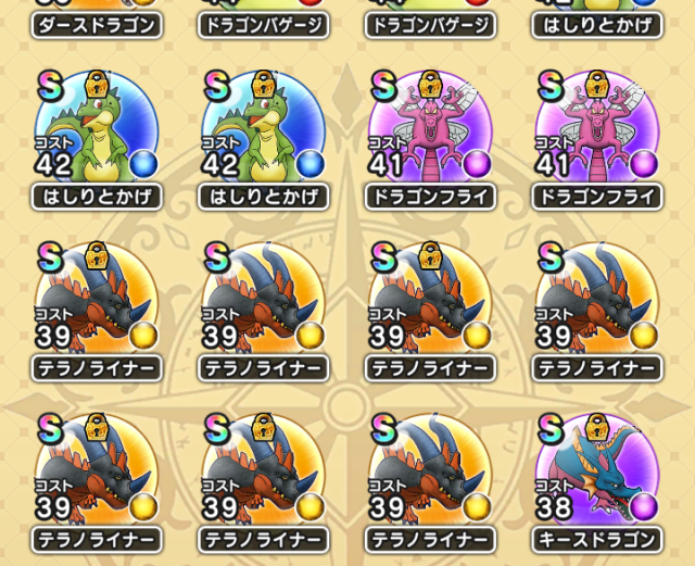 地図でお宝モンスターのこころ全種集めたけど、ダッシュランとテラノライナーはB以上がバンバン落ちるよ。D750なのに、20匹程度で合成Sが作れたのでかなりユルユル設定。