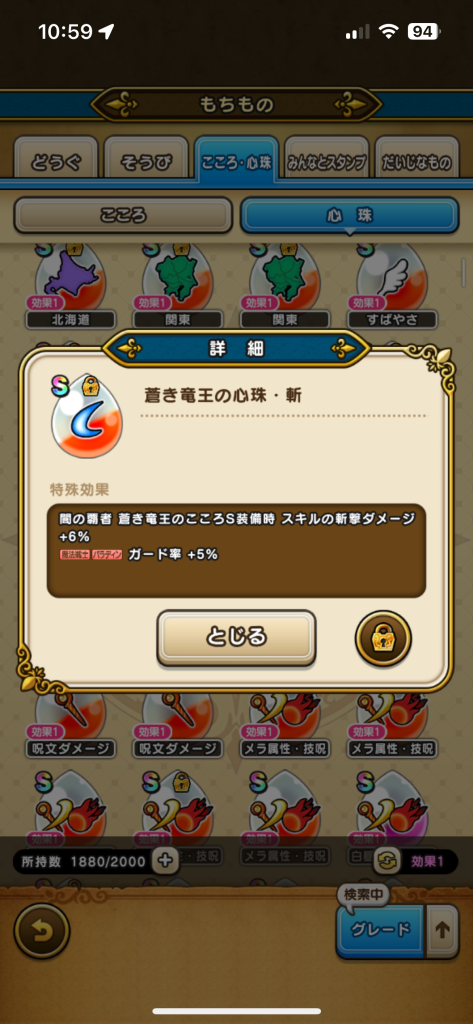 ![]() 助っ人の仕様 | ![]() ゾーマの心珠 | ![]() エスタークの心珠 | ![]() 碧き竜王の心珠 |