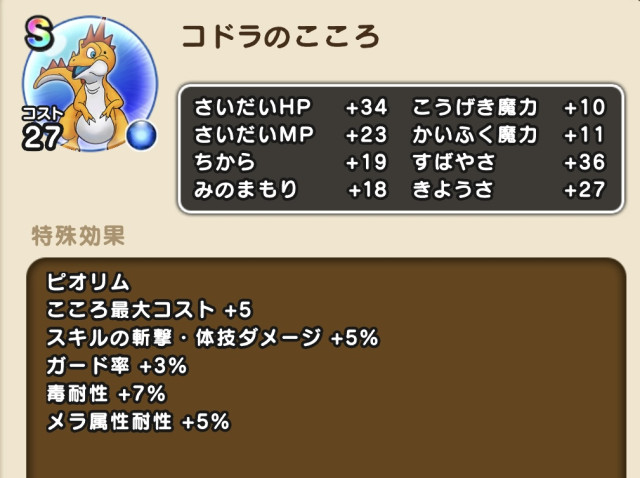 リュウちゃん(覚醒・白)のこころSの性能と必要個数