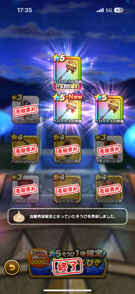 当たったから早速千里行で使ってみたけど他の補助武器のほうが戦闘が上手くいく…