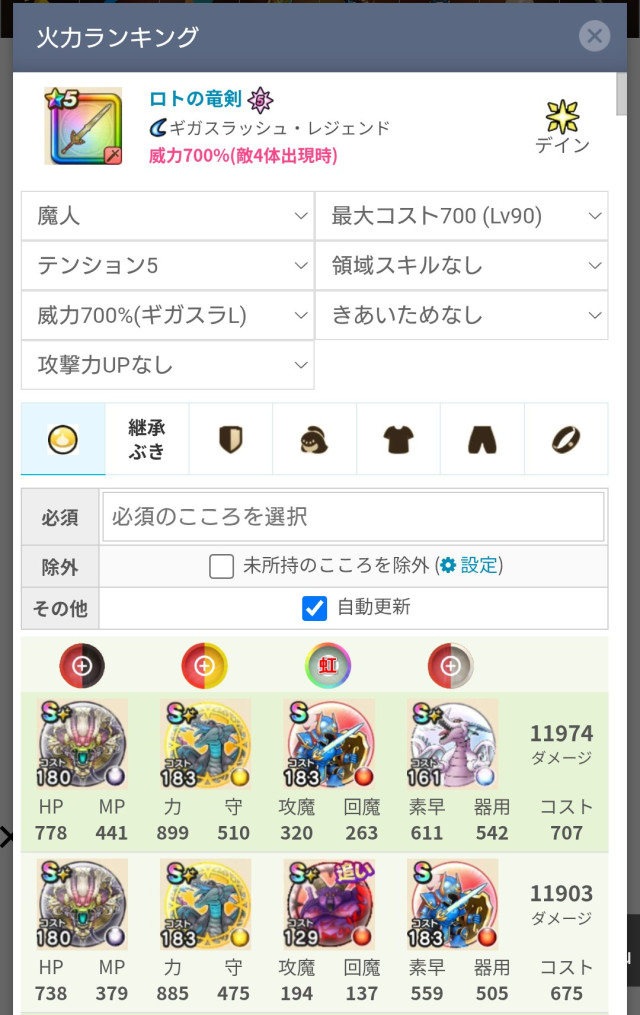 2.3. リーザス、大魔道士(ギラ、エレメント、暴走率盛り、りゅうちゃん覚醒)、神くらい、魔人(じぶん。会心、エレメント盛り)