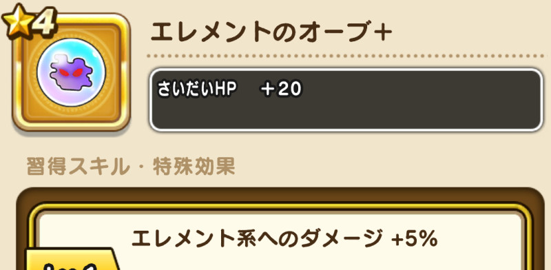 ドラクエウォークの防具「エレメントのオーブ+」の評価や習得スキル・特殊効果をまとめています。