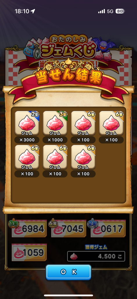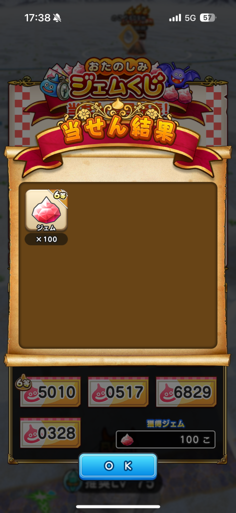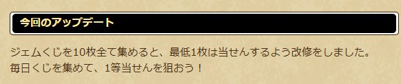ジェムくじを10枚全て集めると、最低1枚は当選するようにアップデートが入っています。