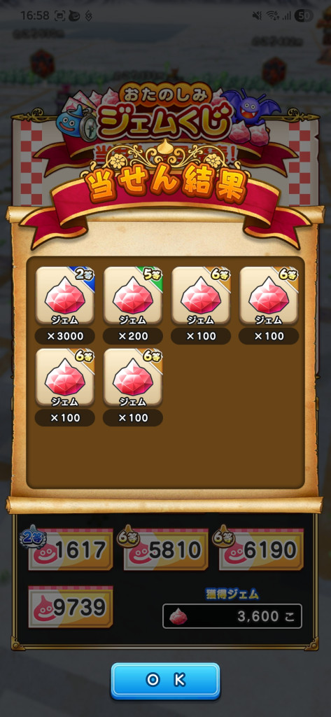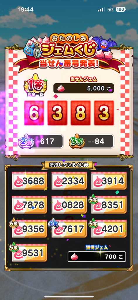 ジェムくじを10枚全て集めると、最低1枚は当選するようにアップデートが入っています。