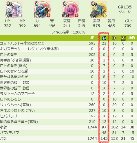 | ※上記の例だと「補助付与前時点で+145%」あり ※追加で 入魂+40%を付与するため「最終的に+185%上限」※実質的な与ダメの上昇幅は最大28%程度になります | ||||