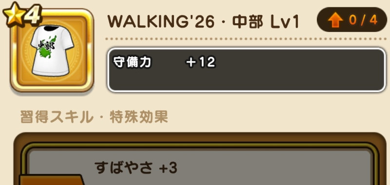 ドラクエウォークの防具「WALKING’26・中部」の評価や習得スキル・特殊効果をまとめています。