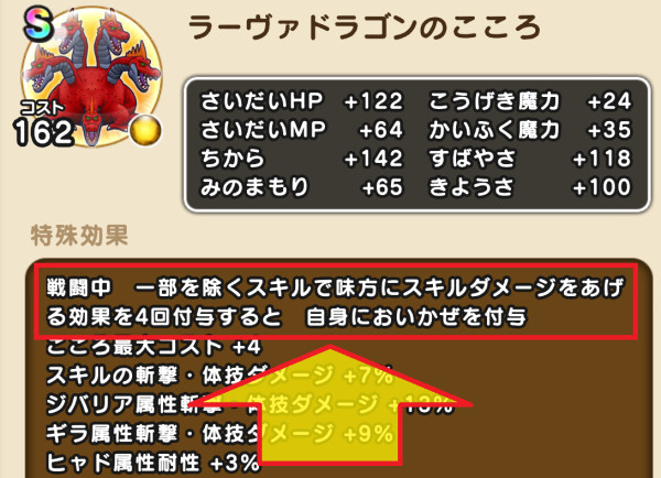 | スキルダメージを上げる効果 (ラーヴァドラゴンのこころS対象効果のみ抜粋) | ||