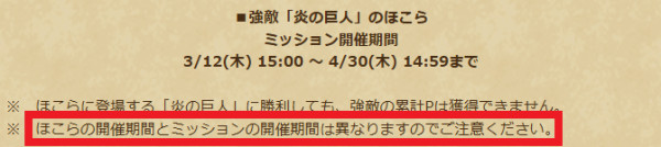 ミッション報酬は4/30(木)まで受け取りできますが、4/16(木)14:59までに達成する必要があります。