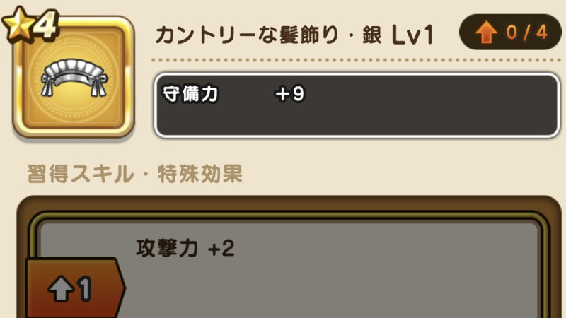 ドラクエウォークの防具「カントリーな髪飾り・銀」の評価や習得スキル・特殊効果をまとめています。