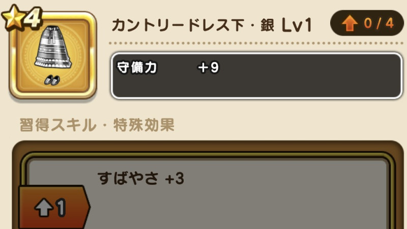 ドラクエウォークの防具「カントリードレス下・銀」の評価や習得スキル・特殊効果をまとめています。