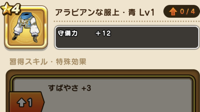 ドラクエウォークの防具「アラビアンな服上・青」の評価や習得スキル・特殊効果をまとめています。