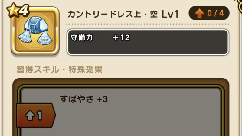 ドラクエウォークの防具「カントリードレス上・空」の評価や習得スキル・特殊効果をまとめています。