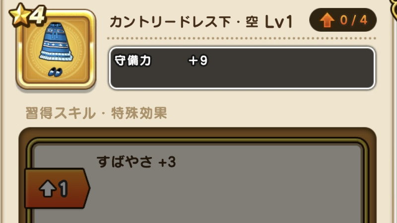 ドラクエウォークの防具「カントリードレス下・空」の評価や習得スキル・特殊効果をまとめています。