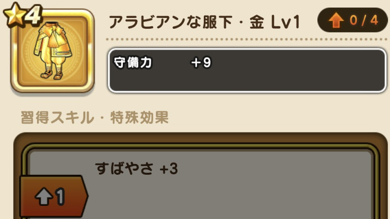 アラビアンな服下・金の性能と習得スキル