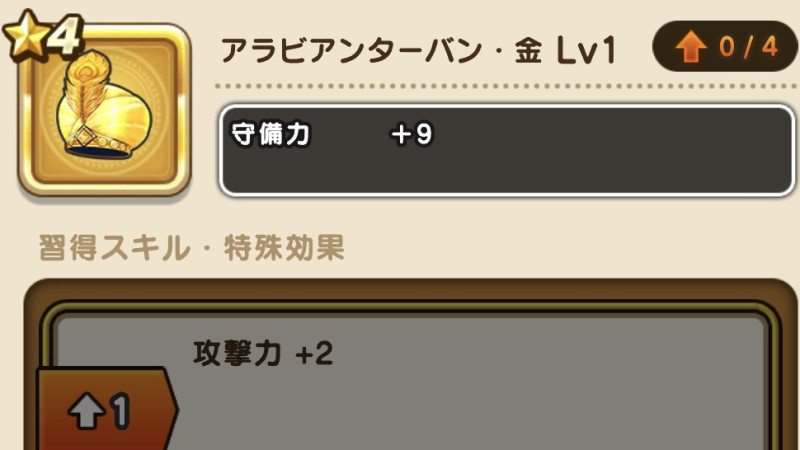 アラビアンターバン・金の評価と習得スキル