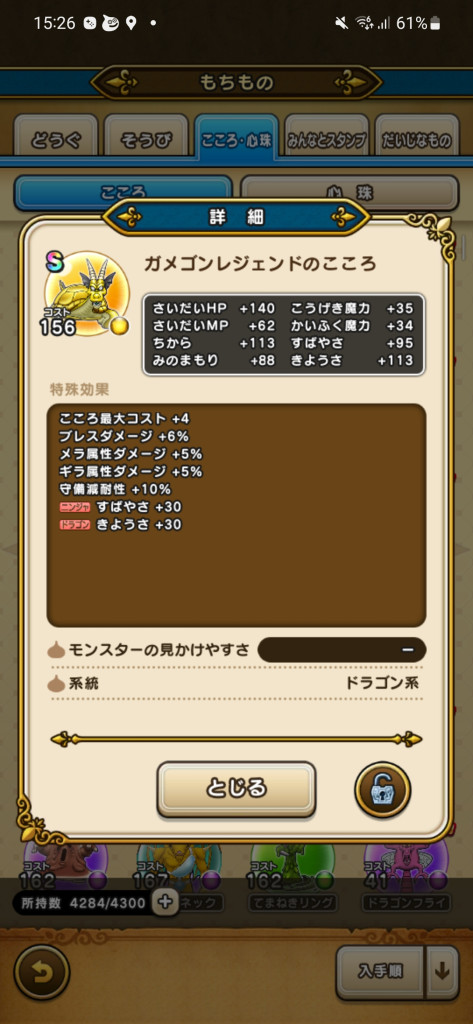 ドラクエウォークの「ガメゴンレジェンドのこころ」の性能・ステータス順位、必要個数を掲載!心珠ポイントへの交換効率や出現場所などもまとめていますので参考にしてください。
