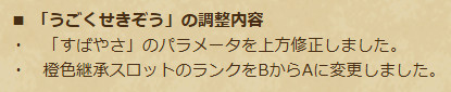ステータス「すばやさ」の上方修正と、橙継承玉スロットがからに強化されます。