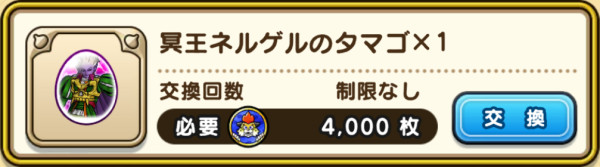 冥王ネルゲルのタマゴがまものコイン交換可能に