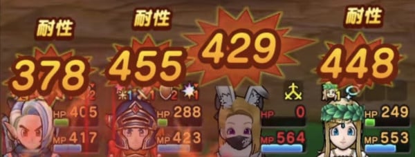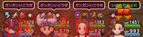 こちらも全属性耐性&守備1段階減少状態ですが、痛い攻撃です。守備1段階減も確認できます。