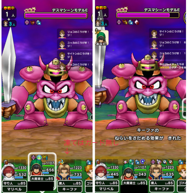 画像だと3番目のキーファだけ凍て波ガード無し、他3人は有りだとキーファだけバフ消し食らい他は消されず