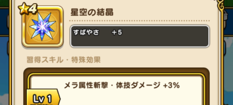 ドラクエウォークの防具「星空の結晶」の評価や習得スキル・特殊効果をまとめています。