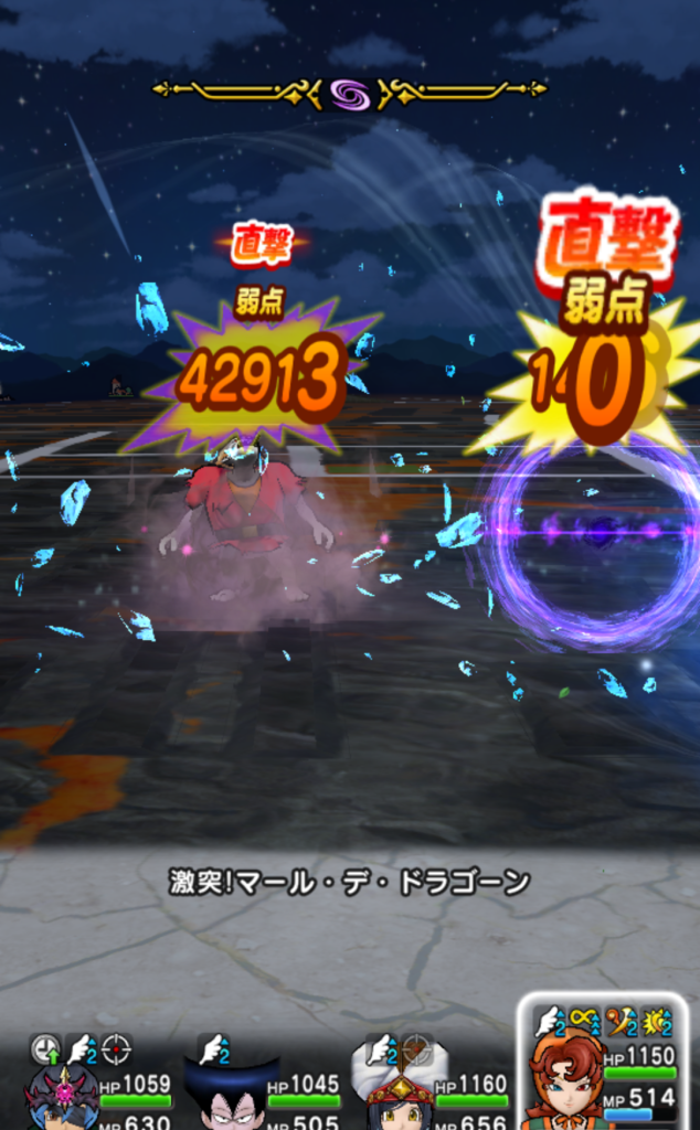 自身が会心の一撃を3回発生させると 敵全体に威力700%のガード・みかわし無効の斬撃ダメージでマール・デ・ドラゴーンが直撃する【挑戦】
