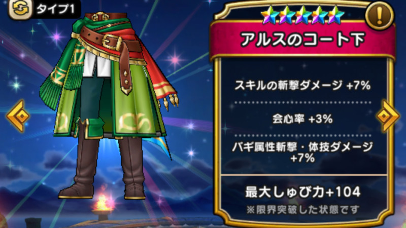 ドラクエウォークの防具「アルスのコート下」の評価や習得スキル・特殊効果をまとめています。