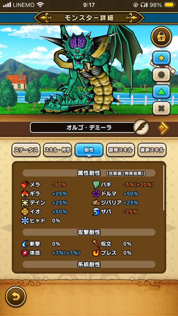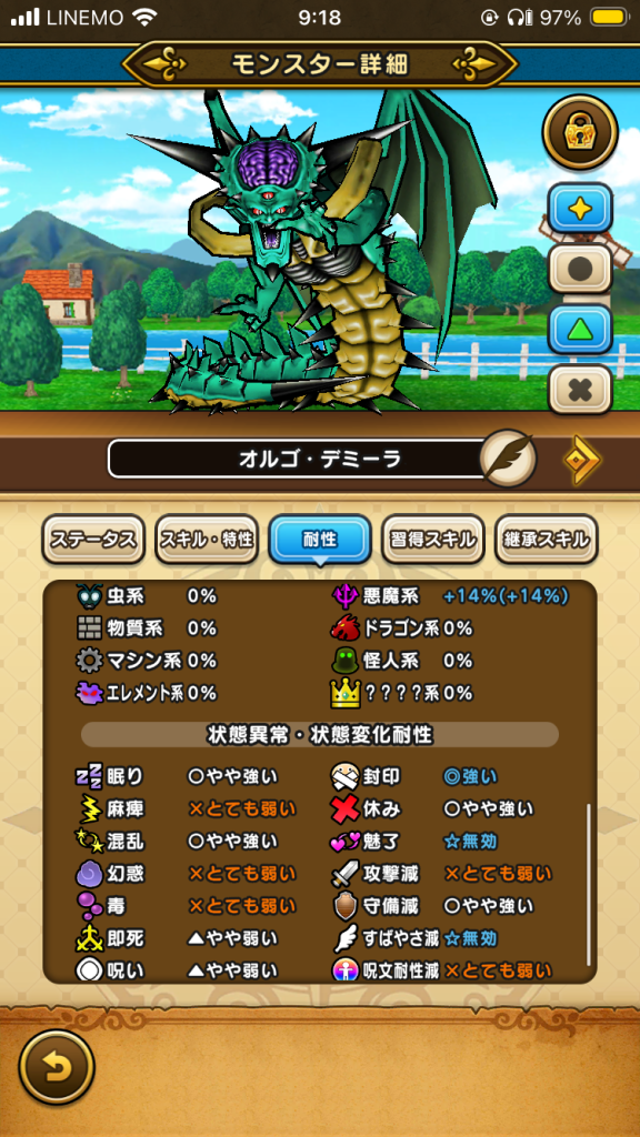 オルゴ・デミーラの弱点と耐性