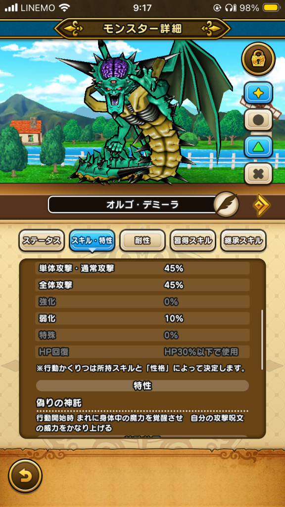オルゴ・デミーラの習得スキルと特殊効果