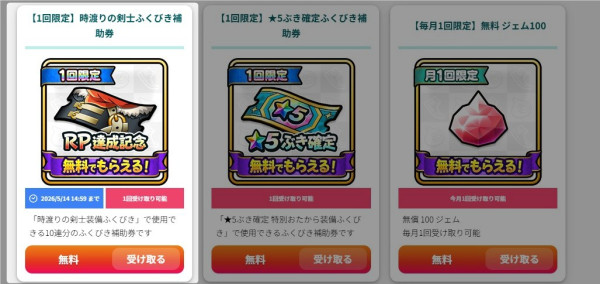 | ④ | 配布券+マイレージ+無償ジェム |