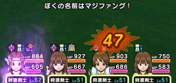 ![]() ぼくの名前は マジファング! | 対象:単体に物理攻撃 属性: 無属性ダメ:最大HPの5%(割合ダメージ) |