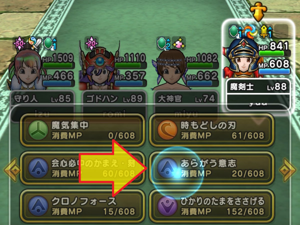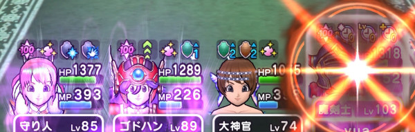![]() 自由枠or大神官 | ![]() モシャス元 (大神官or自由) | ![]() ![]() 天地雷鳴士 要・補正調整 | ![]() 攻撃役 |