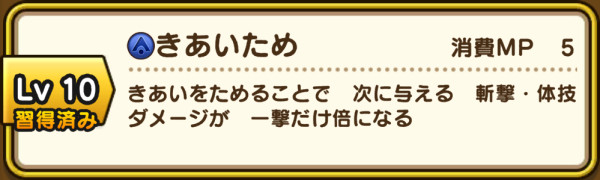 ![]() | ステータスが1Lv毎に4%増える Lv上昇時にHP・MPが10%回復する ※ 解説記事 9レベルアップ | レベルダウン効果を受ける |
