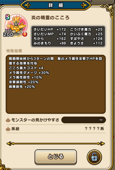 炎の精霊のこころSの性能と必要個数