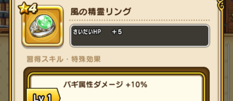 ドラクエウォークの防具「風の精霊リング」の評価や習得スキル・特殊効果をまとめています。