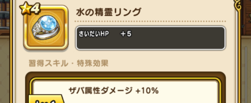 ドラクエウォークの防具「水の精霊リング」の評価や習得スキル・特殊効果をまとめています。