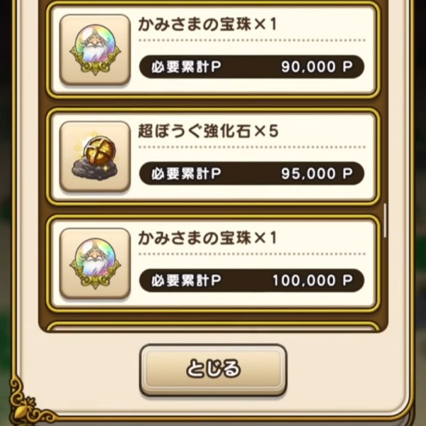 | 90,000P | かみさまの宝珠×1 |