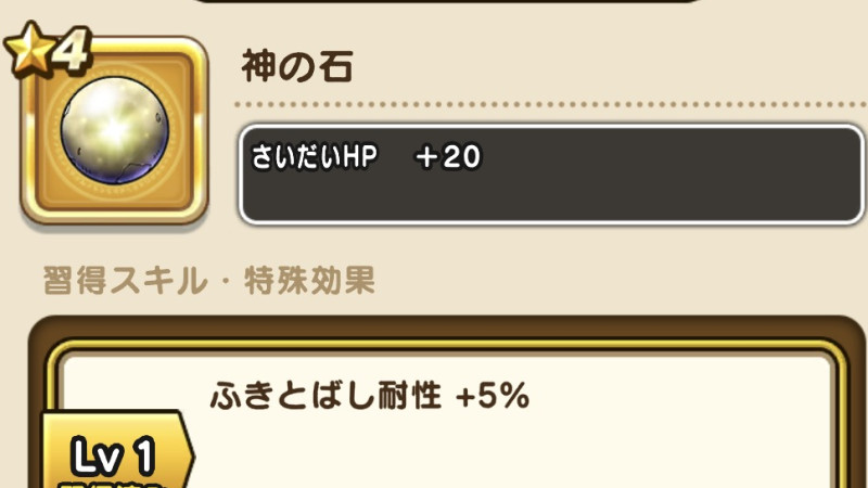ドラクエウォークの防具「神の石」の評価や習得スキル・特殊効果をまとめています。