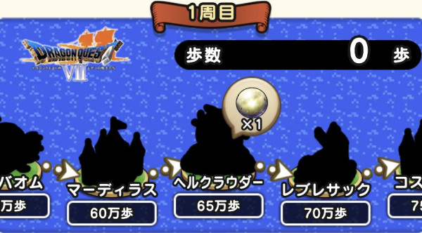 歩いてストーリー解放には、DQⅠ歩いてストーリーを1周以上(100万歩)を突破している必要があります。
