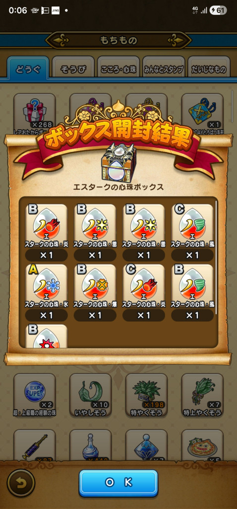 破滅ゴーレムはS3A4です。乱入のドロップ率が高いし、竪琴や滅多に枠も有効なので、周回できるようにさえなればS4難易度は低いほう。あと1個直S来たらまだS2A4のデュランダルかな。ロト竜剣ある今なら楽勝だろうし。