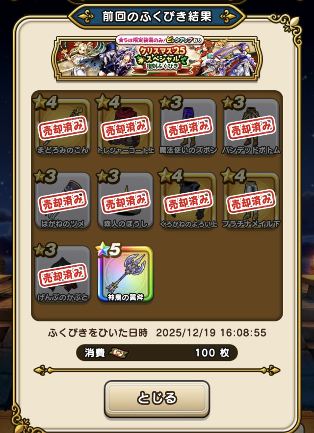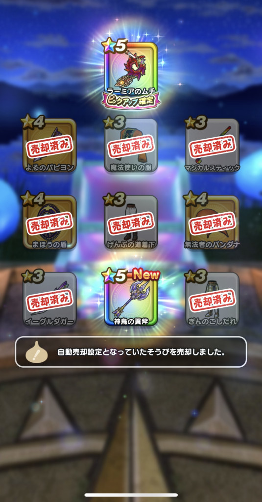 いかづちの杖は常設ですし、ルビスのやりや闇の覇者の魔杖は最新ガチャのセレクションに入ってたから、単独復刻をしなかったのかなと