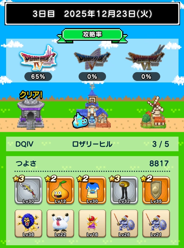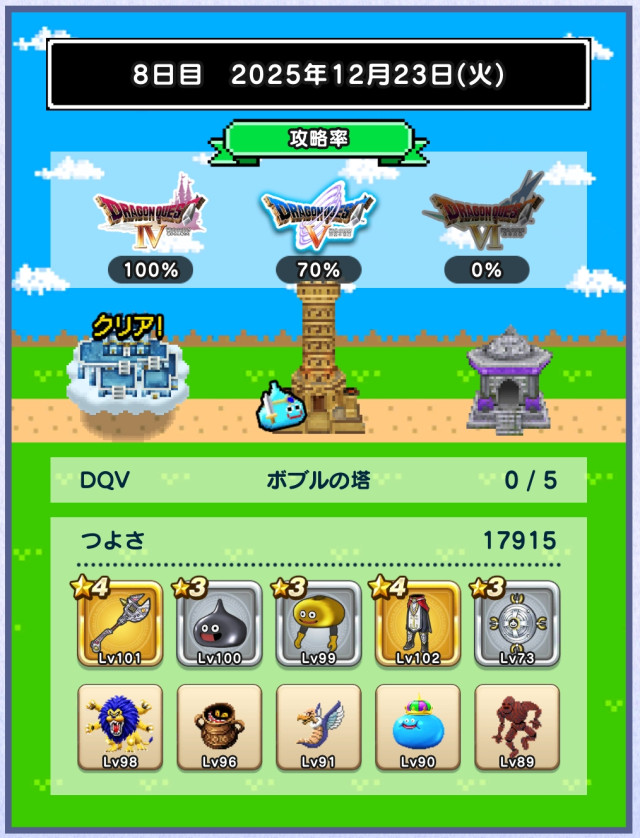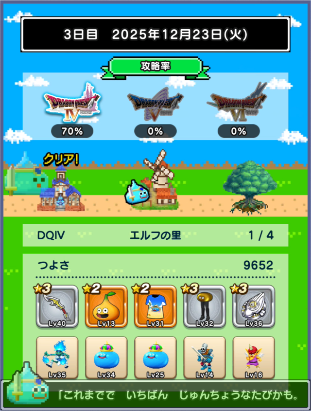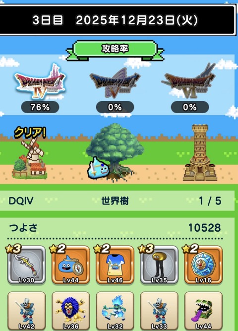 書いてみて思ったけど、DQWってよくできたゲームだわ。家で画面見ながらひたすらゲームなんて出来ない大人のゲームって感じ。