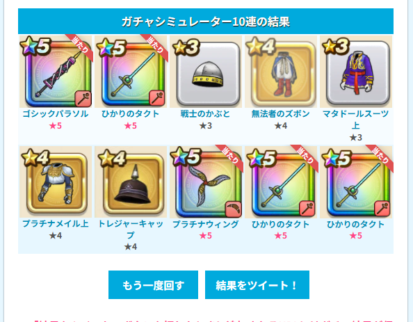 竜剣は当たってないけど、盾は当たった勢はどうしよう。