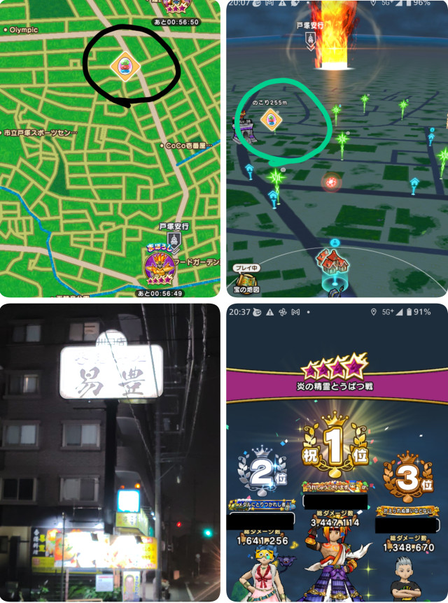 昨日の東川口駅南側の幻メガモンに関しては向かう途中スライムタワー卵があって、易豊っていう中華料理屋?辺りが750m範囲で炎と戦えました