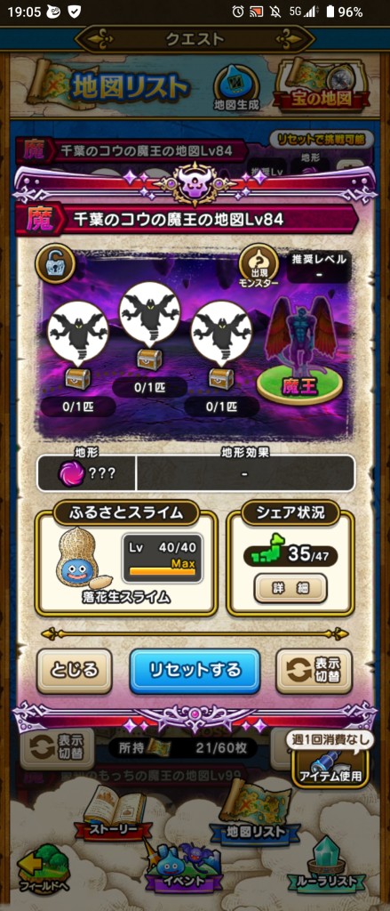 コメットスライムと根絶やし竜は、神喰い剣も如意棒も簡単には通用しなさそうで、なんかパーティー組むの難しそうで、パーティー枠もなかったから、魔王Lv99用の玉座ゾンビパで倒してた。根絶やし竜は、運よくマイレージでルビス斧出たから普通の殴り合いパにしたけど、コメットスライムはなんとなくそのままこなしてる。ソロ敵なら余程のことがない限り、初見でも汎用パで確実に勝てるという安心感がある。