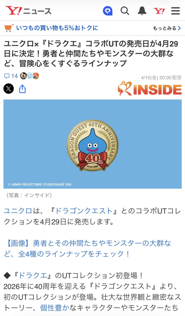 ユニクロ×ドラクエのコラボが、4月29日に決定!