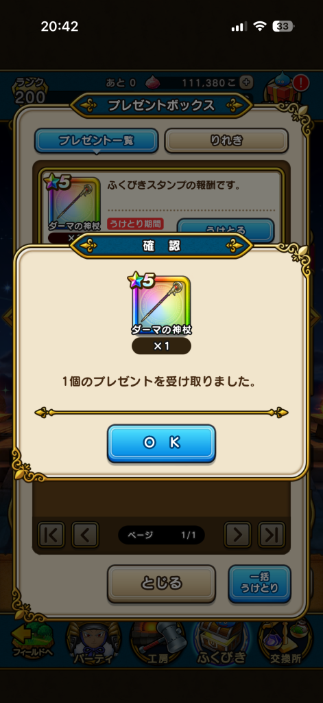 もし受け取ってないなら、メガモン大量に狩っていくしかない気がする。