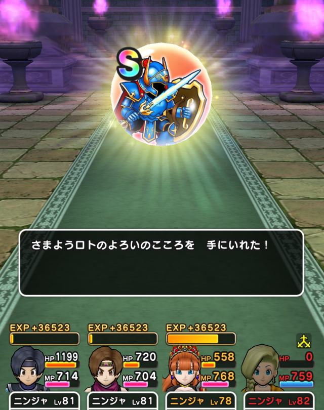 元日にさまようロト鎧のパーティ作って試してて、とりあえず最初の1体倒したらまさかの直ドロS!その前には天気の祠でも直ドロS!でした。よい日でスタートできたのは凄く良かったわぁ