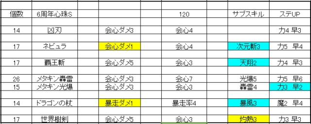 私はメタキン剣持ってないのにメタキン剣の心珠がいっぱいでましたよ。一方で持ってるグランドネビュラはあまり出ず。凶刃も必要な分はなんとか取れたので贅沢は言いませんが。