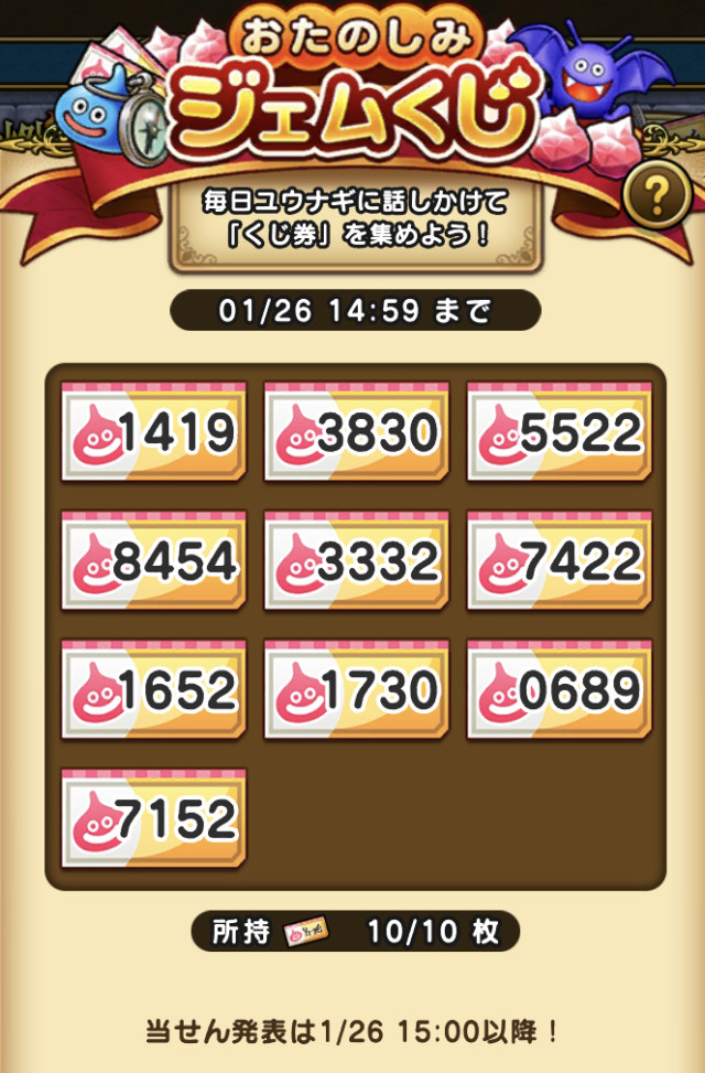 重複なしで末尾0〜9を持ってるひとは5〜6等全て当選で500ジェムは確定ということか。